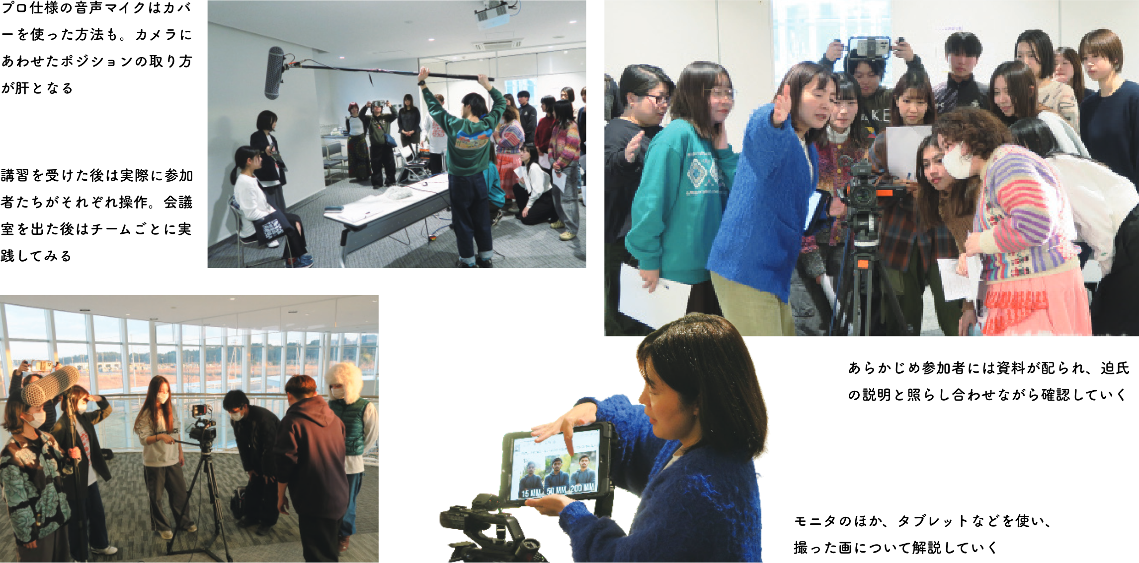 カメラ、録音マイクなどの使い方を学ぶ