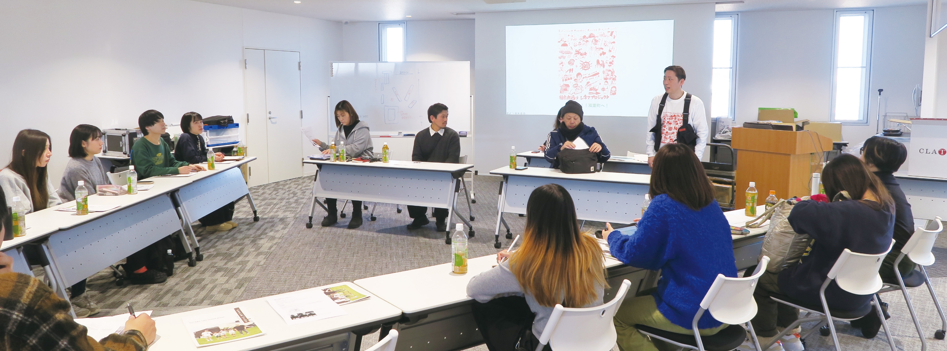 映画はどのようにつくられるのか。その基礎を知っておこうと、数多くの作品を手掛けてきた全体進行の向田優氏による「映画づくり講座」がオリエンテーションの一環として開催された。